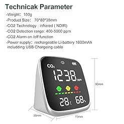 【Portable CO2 Detector】–The CO2 concentration measuring instrument adopts compact design, Compact size, easy to carry, Dimensions are 70 x 80 x 35 mm, weight only 150 grams, measurement position can be easily changed.CO2 monitors are not only widely used in homes, but also in places where people tend to gather and poorly ventilated places. (For example: schools, hospitals, restaurants, shopping malls, etc)