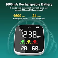 【8+ Hours+ Long Standby】–The built-in 1600 mAh battery can provide more than 10 hours of standby time when fully charged, in addition to real-time power through the included usb charging cable, this enables long-term monitoring of air quality level