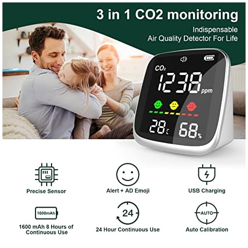 【High-precision Real-time Monitoring】–The CO2 sensor has a built-in high-performance chip, and the NDIR sensor has high precision, stable performance and strong anti-interference ability. (Tips: Please let the device work short mins outdoor before use for most accurate results)