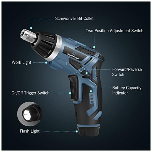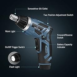 4V LITHIUM-ION BATTERY: The 4V Lithium-ion battery offers great capacity and longer life. The power indicator on the cordless screwdriver will always be on when it is working or charging, allowing you to know the power capacity at any time.