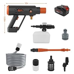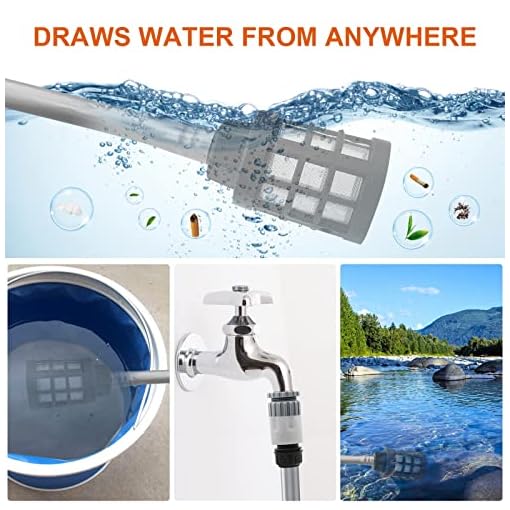 PORTABLE & PREMIUM DESIGN: Cordless, Lightweight and Compact design can travel anywhere. The 200-inch hose with filter basket can effectively and deeply filter impurities, particles, waste leaves, sludge, etc., better protect our machine. In addition, we also provide a nozzle with detergent container(approx.400ml), which can be used for daily cleaning. Fast foaming, fine and uniform foam, easy to wash the car.