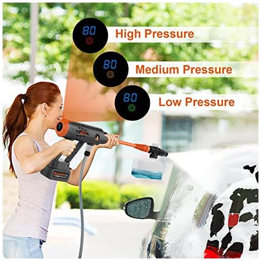 LED BATTERY INDICATOR & 3-STAGE PRESSURE MODES: This pressure cleaner is equipped with LED power display, you can clearly see the remaining battery power. The 4.0 battery ensures sufficient battery life. And you can switch 3 modes conveniently by pressing the mode button on the LED display. High pressure for removing stubborn stains quickly. Low Pressure for lighter cleaning tasks.