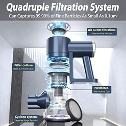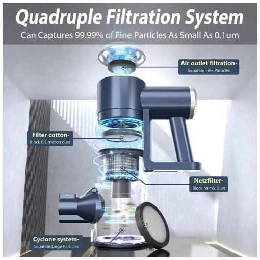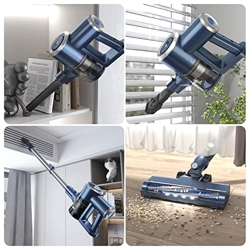 【Excellent Filter System & LED Motorized Floor Head】The cordless stick vacuum wood floor filter system uses a stainless steel filter, filter holes precision and small. Service life is twice longer than traditional filtration system, It provides the ultimate purified air and excellent cleaning experience for every user. The vacuum cleaner cordless carpet cleaner has an LED light on the head to help you clean dark areas.