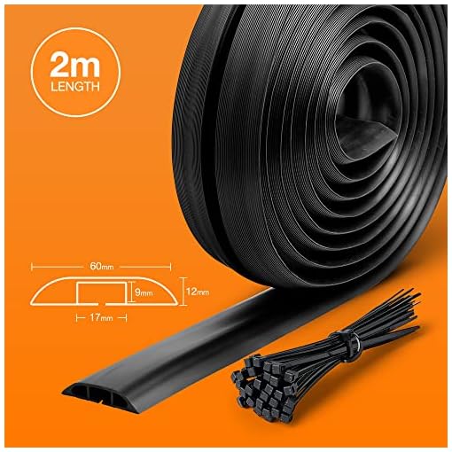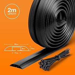 Deeba UK Floor Cable Cover with Pack of Cable Ties | Wire Cover with Non-Slip Base, Protect Cables & Prevent Trip Hazards | Ideal for Offices, Retail, Gyms, Factories & Garages