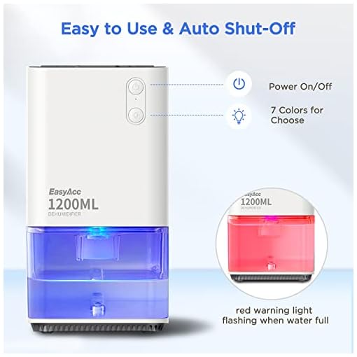 Dehumidifiers for Home Damp, EasyAcc 1200ml Electric Dehumidifier with Ultra Quiet & Auto Shut off 7 Colorful LED Portable Mini Dehumidifier for Wardrobe Bathroom Closet RV Bedroom Garage