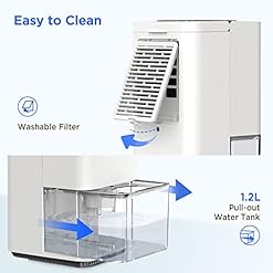 🌞【Upgraded Powerful Dehumidifiers】Still annoyed about the Wet Room, Moisture closet, Damp Floor? The EasyAcc dehumidifiers for home performance of upgraded 50% more than others with semiconductor refrigeration and powerful suction fan. Max collect 14 OZ (400ml) of water per day (at 86°F, 80% RH ). Ideal for spaces 50-320 sq ft.