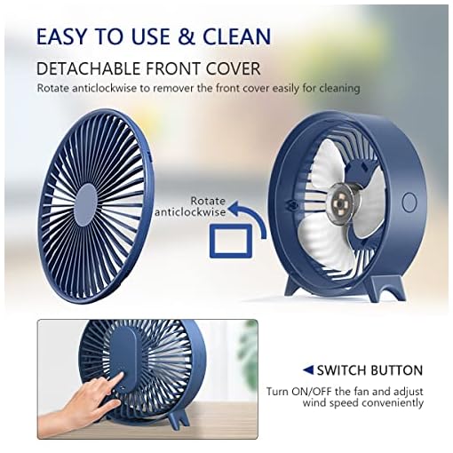 【Detachable Cover for Easier Clean】Just rotate the mini fan cover counterclockwise,it will be able to detached and easily to clean the small fan inside.