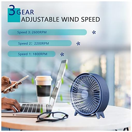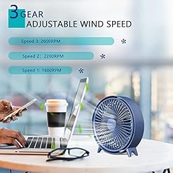 FUTREBSR Desk Fan,Silent USB Fan with 3 Speeds 360°Rotation 2000mAh Rechargeable Desktop Fans Home Kitchen Office Cooling Gadgets