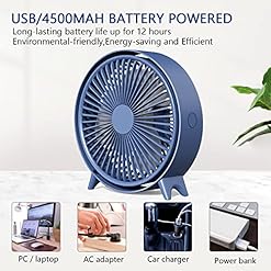 【USB/Battery Powered】This desk cooling fan can be powered by built-in 2000mAh battery, and also can be driven by Type-C cable,which is compatible with PC / laptop, mobile power, AC adapter, car charger and other USB supported power.