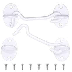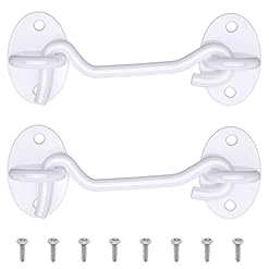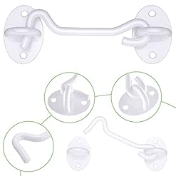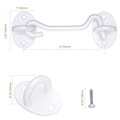 Quantity and Size: The package comes with 2 hook-eye latches, each 4 inches, each latch has 4 screws, enough to meet your needs,And the hooked bar has 180 degrees rotation vertically and horizontally