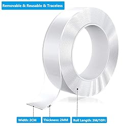 What You Get: 1 rolls heavy duty double sided adhesive tape, total 3M in length. The thickness is 2MM/ 0.08inch. The double side tape can be cut at any size, so please cover enough areas to ensure stick firmly.