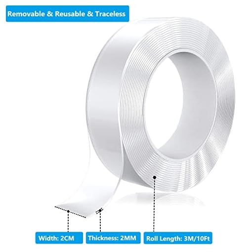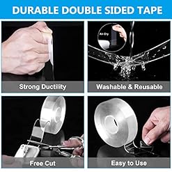 RFWIN Double Sided Tape Heavy Duty 10Ft Transparent Nano Tape, Double Sticky Mounting Adhesive Tape, Removable Wall Tape Traceless Poster Carpet Tape for Home, Office, Car, Outdoor Use