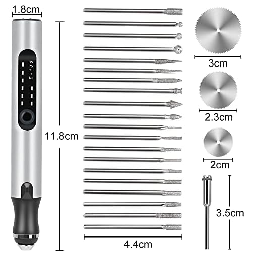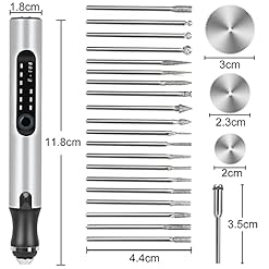 Best Choice For Beginner: Our engraving pen one step installation, no required tool, just insert to use. 3 levels adjustable rotation speed allows beginners to learn to carve gradually and use it safely. Engraving Tool Kit contains 1x engraving pen, 20 x bits, 3 x stainless steel cutting discs (22mm, 25mm, 32mm), and 1 x shank pin. 16 x stencils, 1 x USB power cable. Electric engraving pen enough for everything you need.