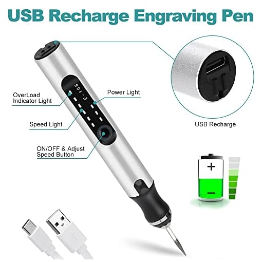 High Quality: Adopts intelligent overload protection chip, large resistance(press too hard) will automatically cut off power, use safely. Light and compact pen-like design provide comfortable use for precision engraving performance from fine lines to deep grooves, you can hold like a pen, lightweight & compact design, letting you perform intricate work smoothly and effortlessly. Keep the portable size and USB wireless engraver so you can apply the engraving tool everywhere.
