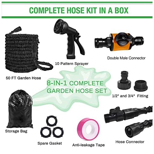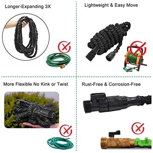 Expandable Garden Hose Pipe with 10 Function Spray Nozzle,Lightweight Flexible Garden Hose with 3/4″,1/2″ Connector Fittings,Anti-Leakage No-Kink Magic Garden Hose Pipes