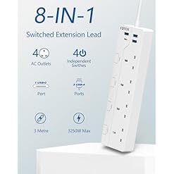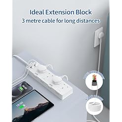 Multi Plug Socket Extensions: With 4 AC outlets, 3 USB ports and 1 USB C port, it can power up to 8 devices simultaneously. Acts as socket extension with 3 metre cable can power for multiple household appliances such as laptops, tablets, printers, speakers, irons, hair dryers, mobile phones, games consoles etc. Just make sure that the total power is under 13A/3250W.