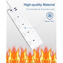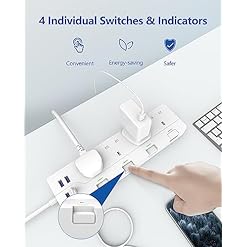 Individual Switched Power Socket: FDTEK 4 gang plug extension has independent switches and indicators for each outlets, making the electrics visible and controllable. Standby devices do not need to be plugged in and out all the time, thus saving you power.