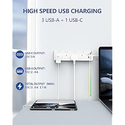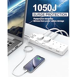 Surge Protected Extension Lead: The power strip is also a surge protector(1050J) with overload protection, assembled with high-quality components and 1382℉ fireproof material, and has overcurrent, overheat, short circuit protection and childproof shutter, allowing you and your famaly to use it safely.