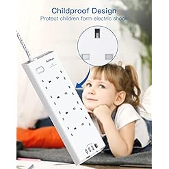 【Childproof Design & Upgraded Braided Extension Cord】 Child-protective safety door keep children safe from electric shock of careless touching. The 1.8 Meters long extension cord is made of pure copper, which is very thick and has better current carrying capacity (13A). The braided power cord is not easy to deform, durable and more safety.