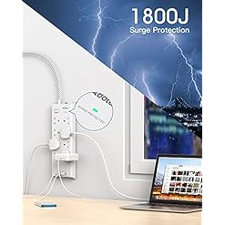 【1800J Surge Protection & Multi Protection】Surge protection circuit has a minimum energy absorption capacity of 1800 joules. It will ensure your electronics are safeguarded from lighting, surge and voltage spikes. (The “SURGE PROTECTED” soft indicator light on to show your devices are protected). The multi plug also protected against over-voltage, over-current, overload, short-circuiting. High-quality fire-resistant PC material and standard copper design makes it fireproof up to 1382℉.