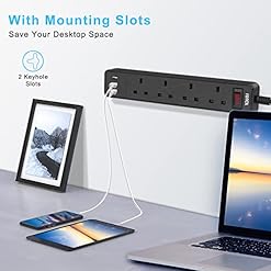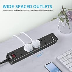 ▶Wall Mounted & Wide-space Outlets: FDTEK multi plug extension lead owns 4 power outlets with wide distance in 53cm between 2 outlets, is wide-spaced enough for big adapters without blocking each other; Comes with 2 keyhole slots on the back of power strip, you can easily and firmly installed in various applications, which brings you a neat and tiny desktop.