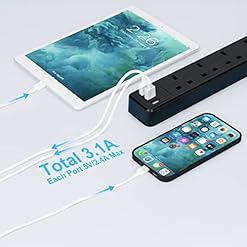 ▶Protection for Your Devices: Our power strip with usb are certified by UKCA, CE and ROHS, solidly made of high-quality components and 1382℉ fireproof material, built-in safeguards that protectd you and your device from overheat, overcurrent, overvoltage, short-circuiting.