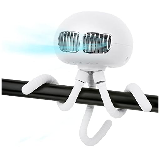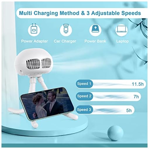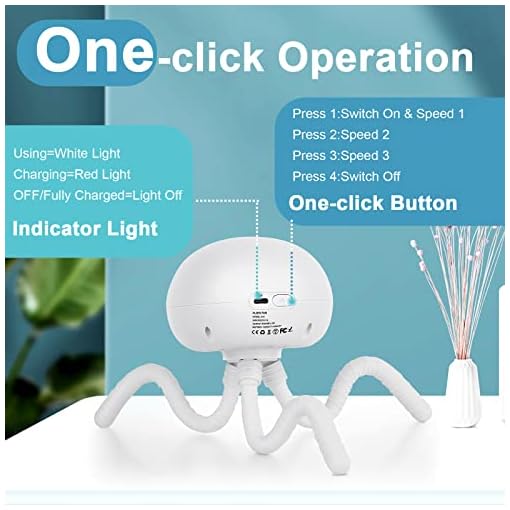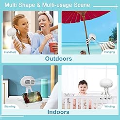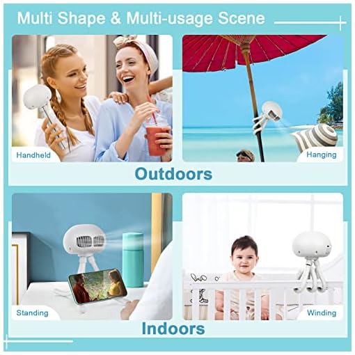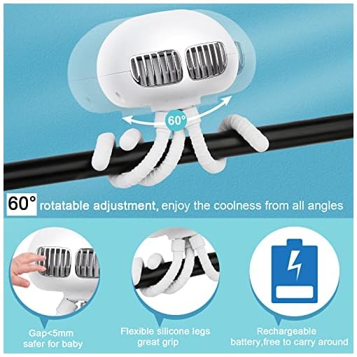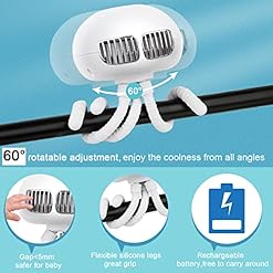 Flexible Octopus Tripod & Multipurposed Shape: Three silicone legs provide great grip to hold the stroller fan safely. You can handheld it while walking; hang it on the support of a camping tent or umbrella; wrap it around on baby stroller, cribs, car seats or bicycle; or stand it on the desktop and even put your cellphone on its deformed feet as a phone stand to watch movies.