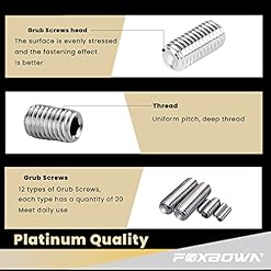 FINE MATERIAL: Mixed grub screws are made of high quality 304 stainless steel, which is durable and sturdy, non-deforming, corrosion resistance, rust resistance, which is not easy to break. This hex head screws design won’t slip out easily, ensure long time using.