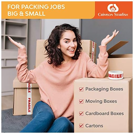 UNMATCHED VALUE: For unmatched value and long-lasting use, Crimson Starfish present our brilliant fragile tape handily equipped with a dispenser. Rest easy knowing our fragile packing tape will remain firmly in place and hold up under pressure. Coming with six rolls for fabulous value, opt for our fragile tape that offers effective sealing.