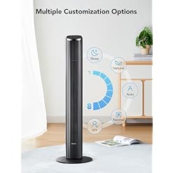 More Choices: This tower fan features 5 modes (normal/natural/sleep/auto/custom combination) and 8 speed levels to cool your body and provide more personalized cooling. It is perfect for bedrooms, living rooms, offices, etc.