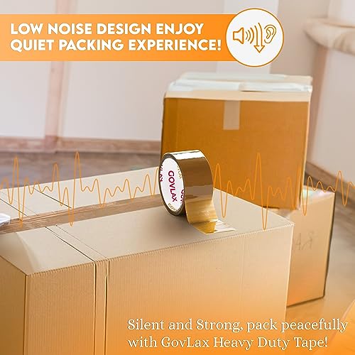 GOVLAX GROUP Premium Brown Low Noise Packing Tape – Heavy Duty & Strong Adhesive Ideal for Packing Boxes, Moving House & Packaging | 66M 48MM 6 Rolls Parcel Tape