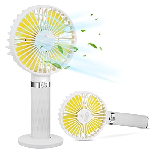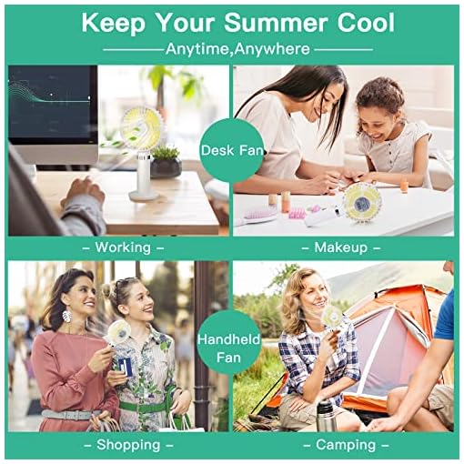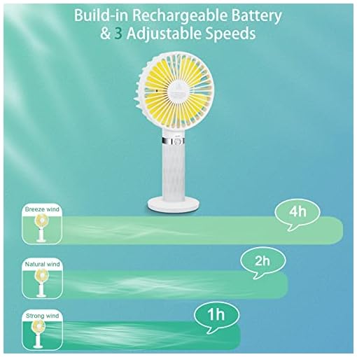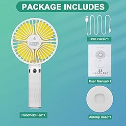 User-friendly Fan : Designed with a humanized unti- slip handgrip design, it can be used as handheld fan or a desk fan to satisfy your different needs with cool design, you can put the fan upright or diagonally on the table, also great for office home.The handheld electric fan with an antislip base at the bottom to keep it stable when placed on the table and it will not damage the table.