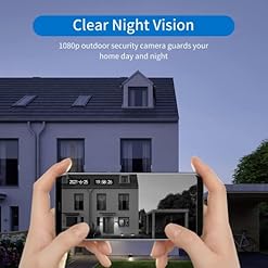 【1080P High-Definition Night Vision】 The security camera outdoor has 4x digital zoom with amazing clarity. 12 visible infrared lights sense ambient light and switch to night vision mode when the light becomes weak. You can clearly see the surrounding environment in the dark night or darkroom.