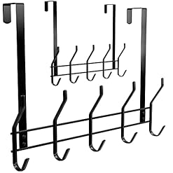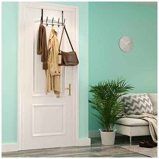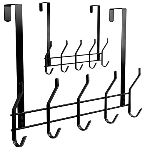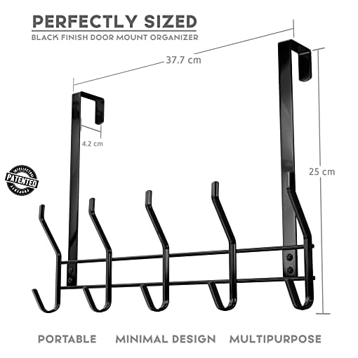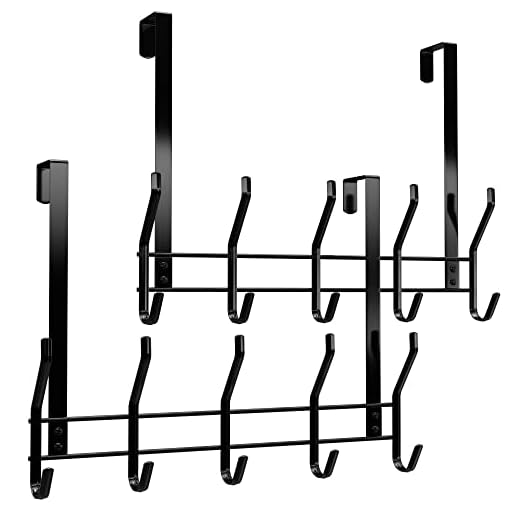 Homephix Over Door Hooks Hanger with 5 Dual Heavy Duty Stainless Steel Hooks for Bedroom, Coats, Jackets, Purses, Bags, Clothes and Towels.
