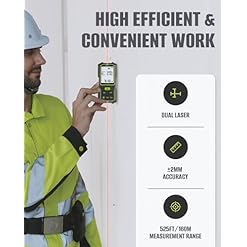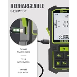 Accurate and Dependable: Offering a measurement range of up to 525ft (160m) with a precision of within 2mm, this laser measuring tool delivers consistently reliable results. It features multi-benchmark support for enhanced stability and accuracy. Powered by a rechargeable lithium battery, it provides over 5000 measurements per charge, making it ideal for extended work sessions.Safety level-Class II laser; Less than 1mW power output