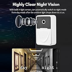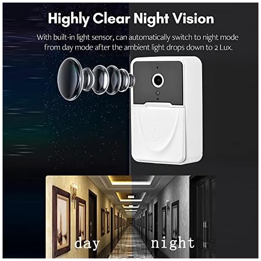 Irishom Wireless Video Doorbell Camera Visual Smart Doorbell with Motion Detection Night Vision 2-Way Audio Real-Time Monitoring AAA Batteries Powered