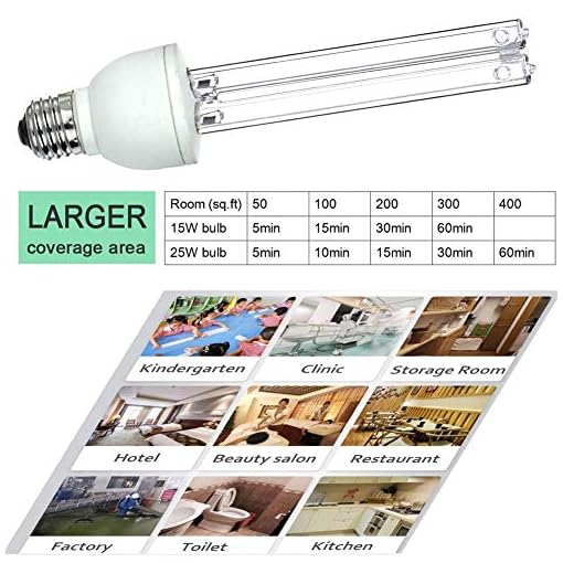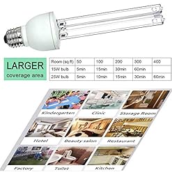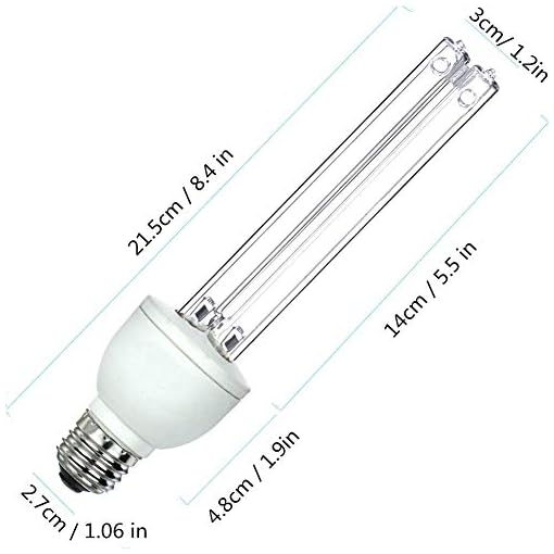 JIXIN UV Lamp Compact UV-C Light Bulb E27 25w Covers up to 400sq ft. U-V-C Ozone Free