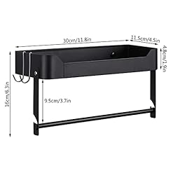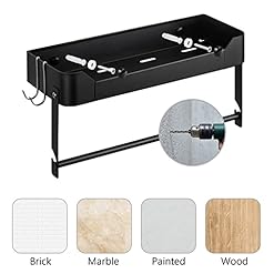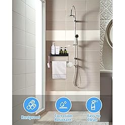 Wall Mounted Shower Caddy Basket, Spice Rack Organiser with 2 Hooks, Kitchen Roll Holder with Shelf, 3 IN 1 Stainless Steel Towel Rack Holder for Bathroom Accessories Storage – Black