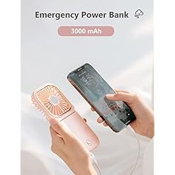LETSCOL Neck Fan, Handheld Fan, Portable Neck Fan, Small Foldable Pocket Fan, Personal Mini Desk Fan with Power Bank for Adults Women (Pink)