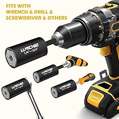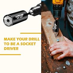 ♻️ONE SET IS WORTH TWO: LLNDEI universal socket tool set comes up with a 1pc universal socket 1pc power drill adapter 1pc magnetic extension socket drill bit holder and 8pcs screwdriver bits (Phillips, Slotted, Pozidriv, Hexagon).