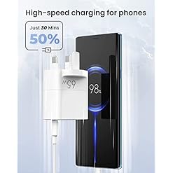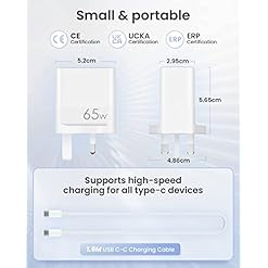 ⚡【GaN Technology/Small and Portable】Our quick charger adopts the latest GaN Tech, which charges 10% faster than ordinary 65W chargers, usb-c travel charger is lighter in weight, smaller in size, and operates at a lower temperature. This phone charger is ideal for travel, work, home