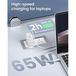✅【65w fast charger】65W maximum power output, our usb c charger plug is equipped with a usb c charger cable, which can fully charge your Macbook Pro within 1.8 hours. Fast charger iphone and ipad charger