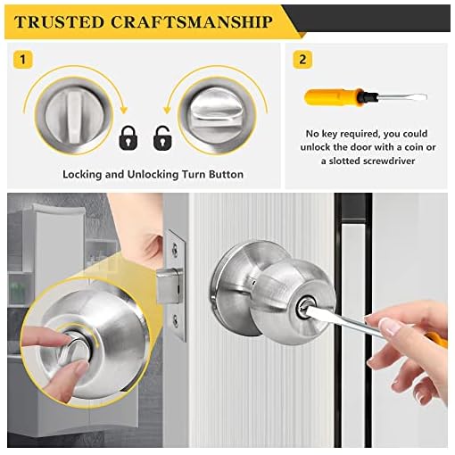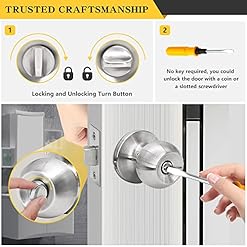 SAFETY & PRIVACY: The Privacy door handles can be locked from the inside without keys, with a safety release function on the other side. Simply turn the turn button to lock and unlock the door from the inside. Privacy door handles are suitable for interior doors, such as bedroom and bathroom, anywhere privacy is required. Opened outside in emergency WITHOUT keys.