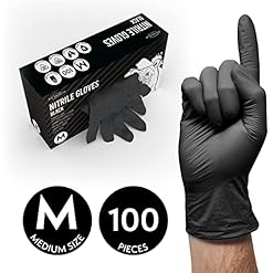 Heavy Duty Medium Size Black Disposable Nitrile Gloves – Box of 100