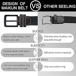 maikun Mens Belt, Elastic Belt for Men, Black Belt Buckle Stretch Woven Belt