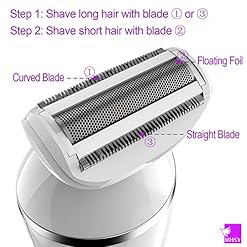 ❤[3-IN-1 Multifunctional Shaver]-The electric shaver has 3 different blades specially designed for women. They are straight blades for arms and legs, floating foil blades for short hair and residual hair, curved blades for armpits and bikini non-planar areas. They work together to effectively remove excess hair for body. Make your legs, armpits, back, arms, bikini line, pubic hair and body smooth to provide an excellent shaving experience.