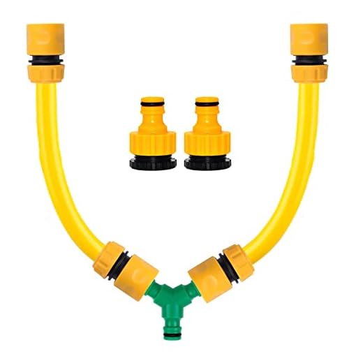 【Pack Includes】40cm hose pipe x 2, 3-way hose splitter x 1, quick lock hose connecters x 4, 2 in1 Tap Connector x 2.