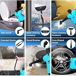 [Portable 9 Accessories Set] This handheld steam cleaner is a multi-purpose cleaning tool for your everyday domestic cleaning and disinfection needs. Plus 9-piece accessory kit such as bent nozzle, glass-cleaning accessory, fabric-cleaning accessory, extended nozzle, round brushes, cone-shaped nozzle. Cleaning multiple different surfaces to meet your different needs. Our nine-in-one steamer can deep clean for your home.