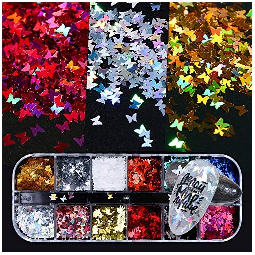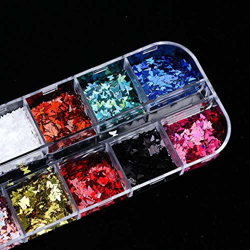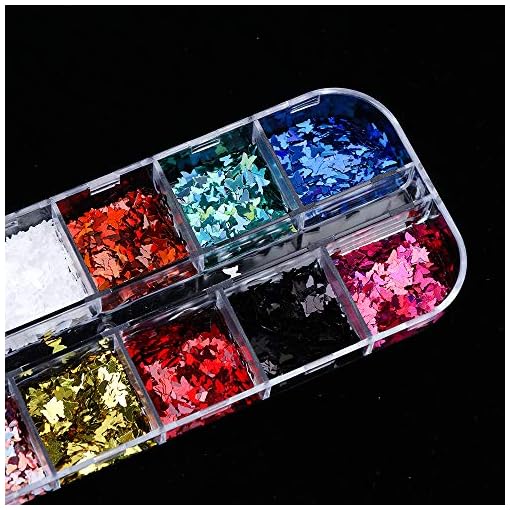 12 Colors butterfly fingernail Decal: The 5.12-inch box is divided into 12 small squares, each of which is equipped with color butterfly sequins, and store them one by one. You can choose different colors to decorate your nails, which can enhance the beauty of your nails.