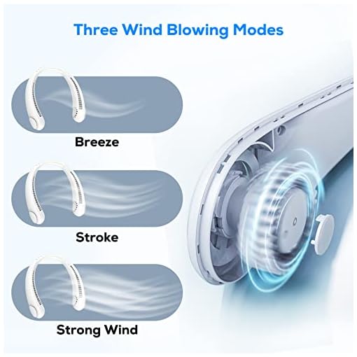 【360°Surround Wind Design】The neck fan adopts 360° surround wind design and dual-channel air intake design, which improves the wind gathering effect, and can blow out the wind speed stably, safely and quickly, so that you can keep enough cool in hot summer. .